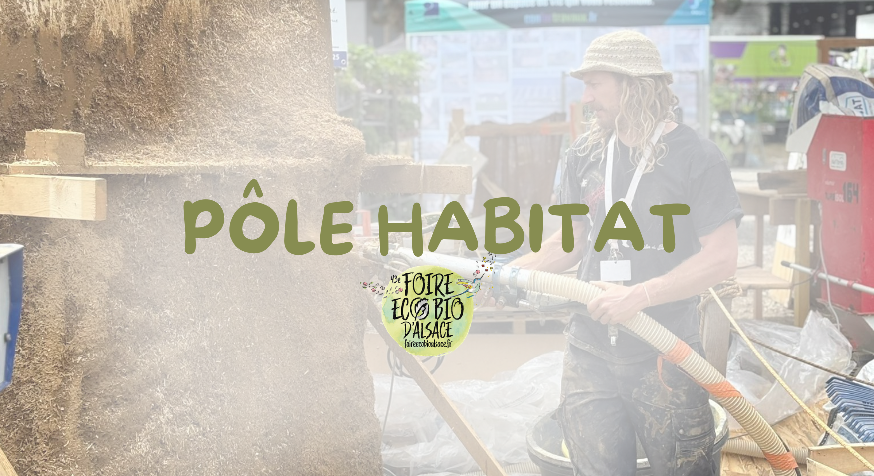 Démonstration de projection à la machine de mélange terre chanvre et paille hachée pour l’isolation de l’habitat, tous les jours de 15h00 à 16h00